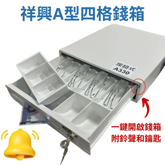 [新竹現貨]330型各式收銀箱 /按鈕式收銀錢箱 熱賣款! 四格錢箱 POS機 附鈴聲 附鑰匙 鈔票收納