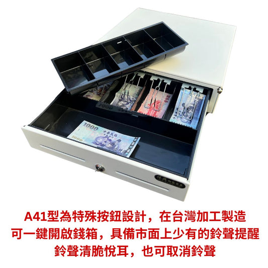 [新竹現貨] 41型大容量收銀錢箱 有鈴聲 四鈔格 收銀機 免電力 手動按鈕式 /POS機用可分離鐵底盤